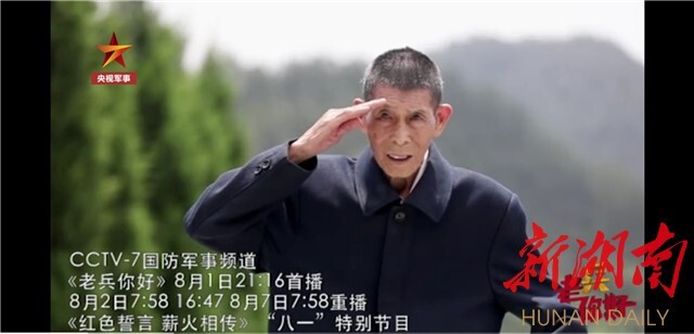 8月1日21时16分,《老兵你好》八一特别节目“红色誓言 薪火相传”在央视CCTV-7国防军事频道首播。时长3个半小时的节目,讲述了8位浏阳老兵的故事:其中有经历过枪林弹雨的抗美援朝老兵、在雪豹突击队服役过的军中精英、带领乡亲脱贫致富的退役军人……