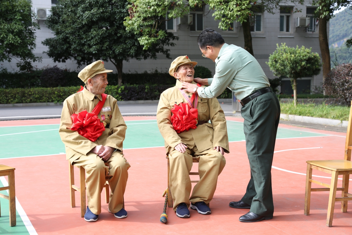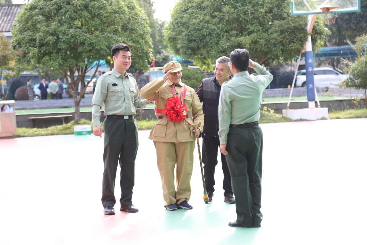 30余名退役军人志愿者郑重向老兵敬礼,表达敬意。