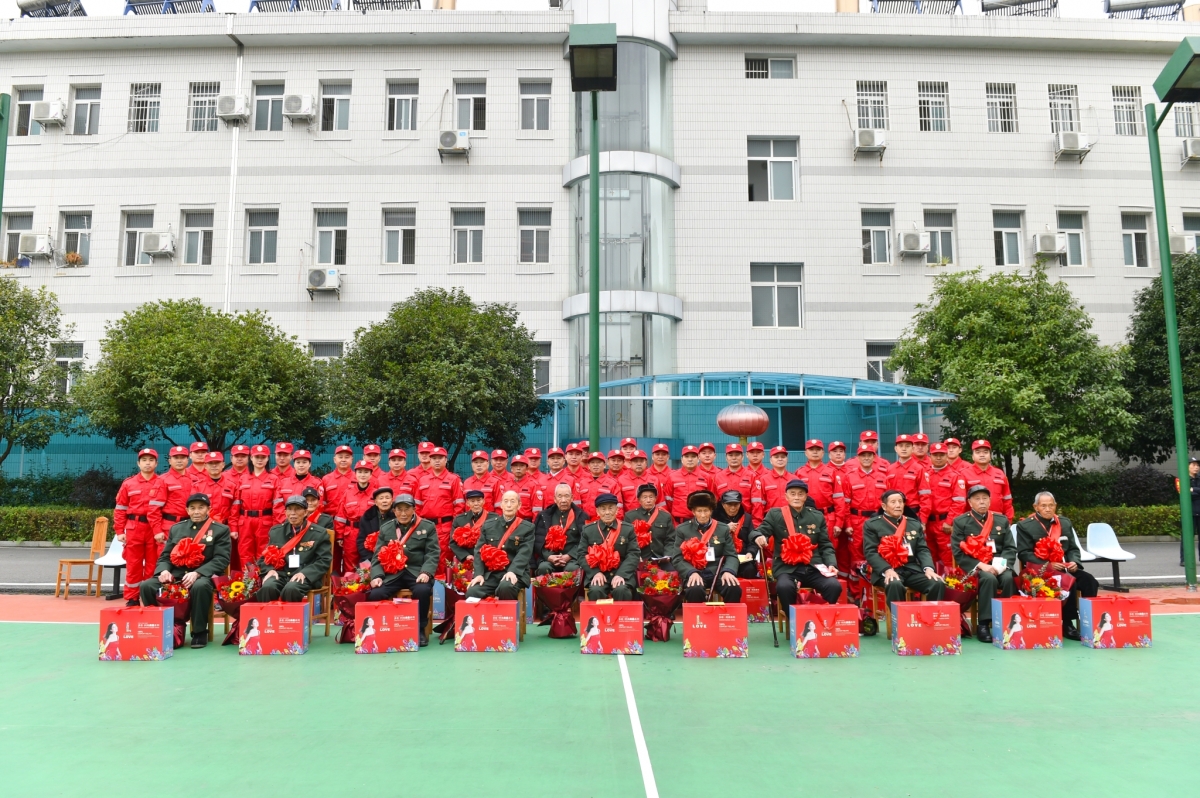 40名少先队员面向可爱的志愿军老战士高唱《英雄赞歌》。50名薪火退役军人公益志愿者、40名薪火退役军人物业员工向英雄致敬!