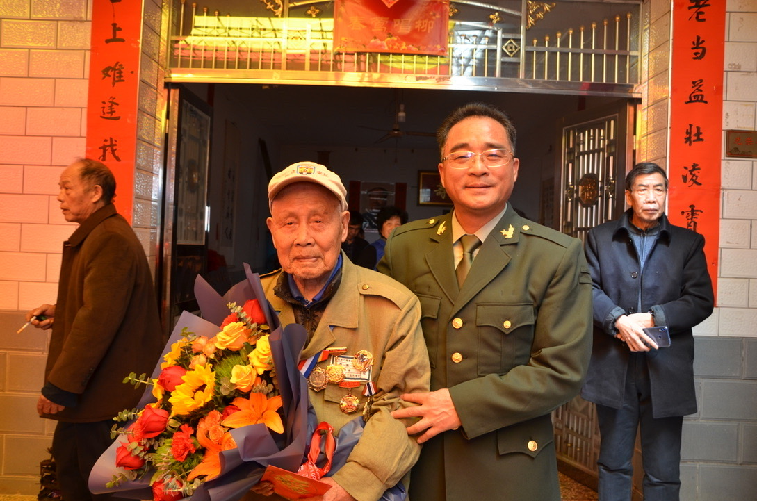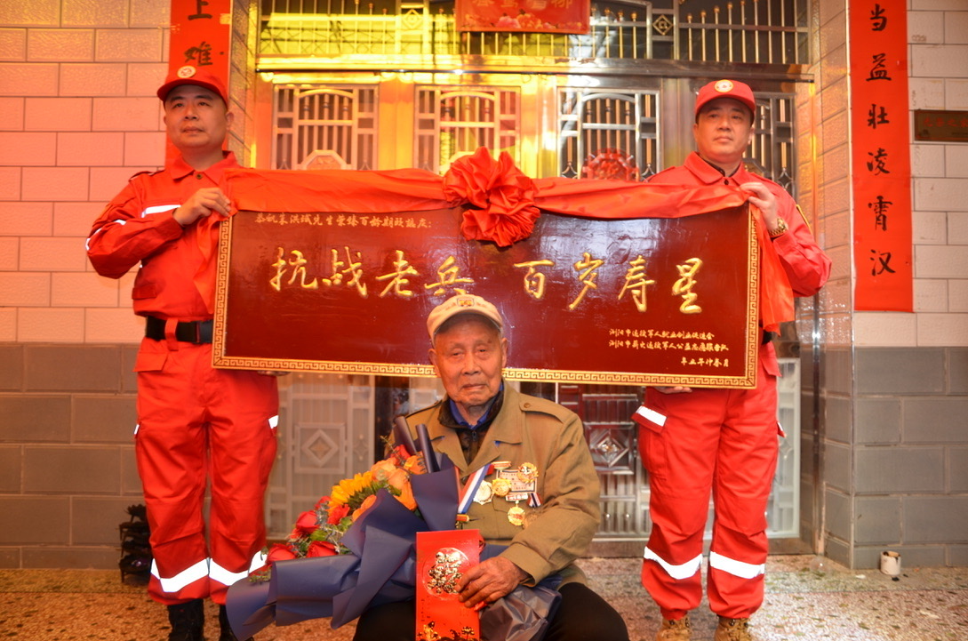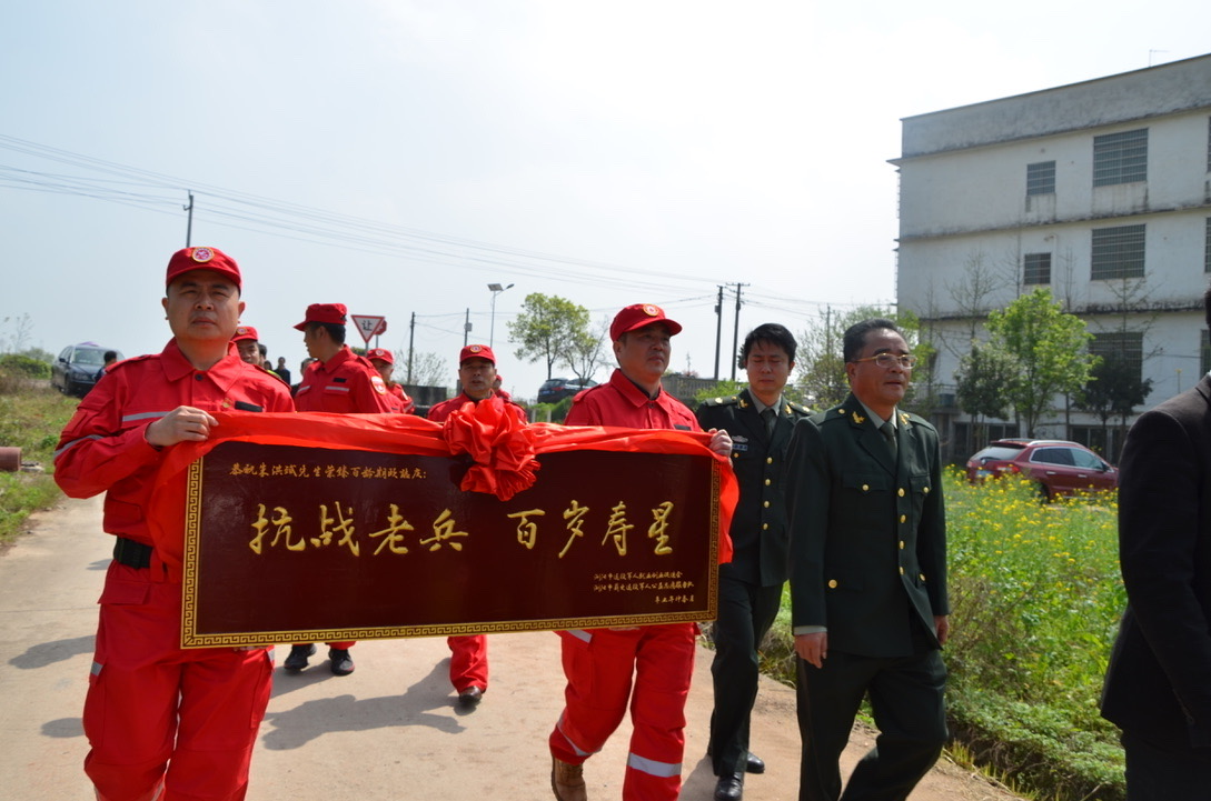 为发扬传承中国军人在抗战时期,为国奉献、敢于牺牲、不怕流血的英雄民族气节,永远铭记历史,终身不忘使命,更加热爱祖国。真实体现对作出历史贡献的老兵表达敬意和尊崇,浏阳市退役军人事务局服务中心、浏阳市退役军人就业创业促进会、浏阳市薪火退役军人公益志愿服务队联合组织:发动部分退役军人志愿者、社会热心人士,于2021年3月28日上午11时,前往永安镇坪头村参加“抗战老兵朱洪斌老先生百岁寿诞”祝寿活动。
