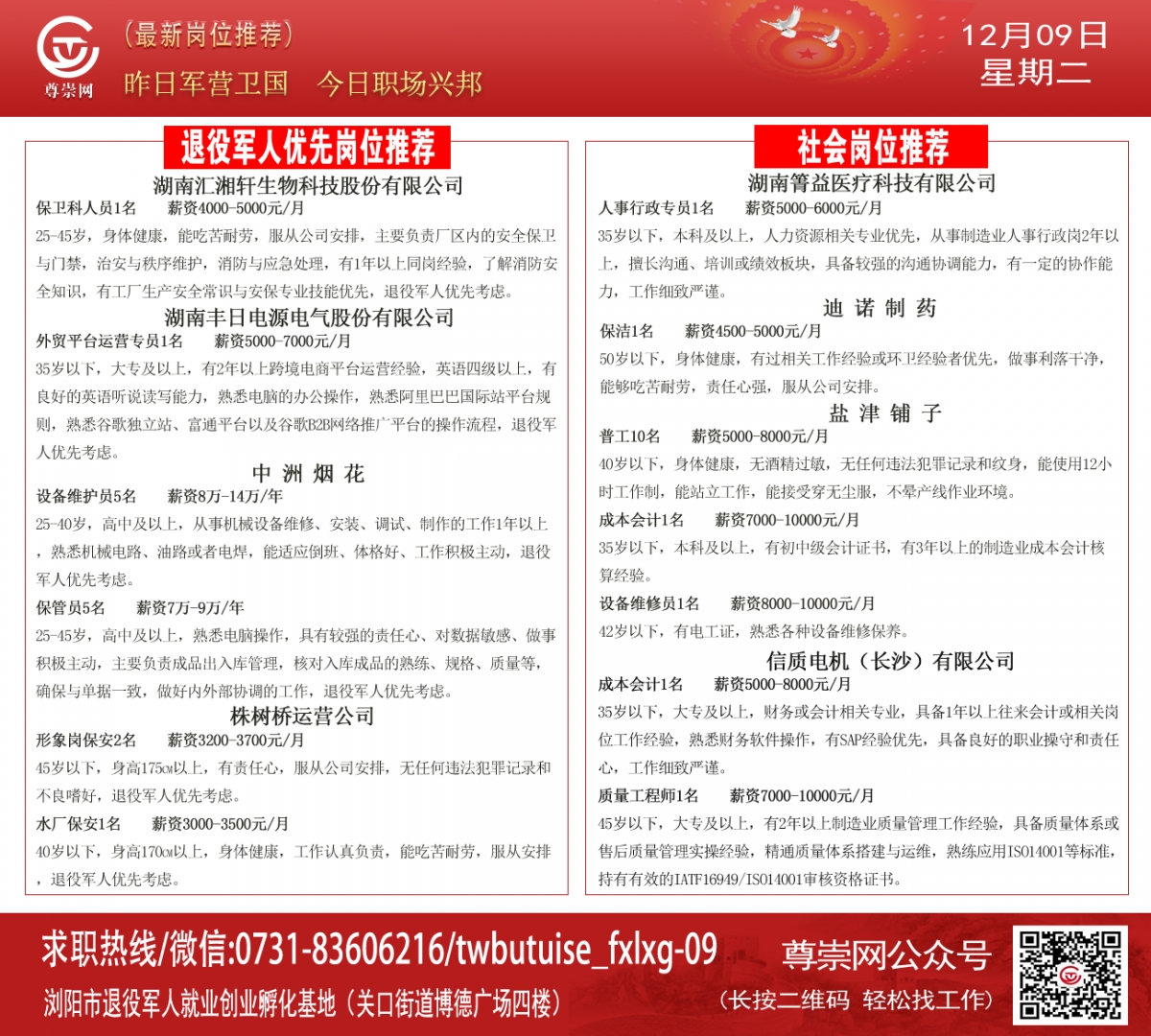 退役军人暨家属优质岗位推荐2025年12月第01期